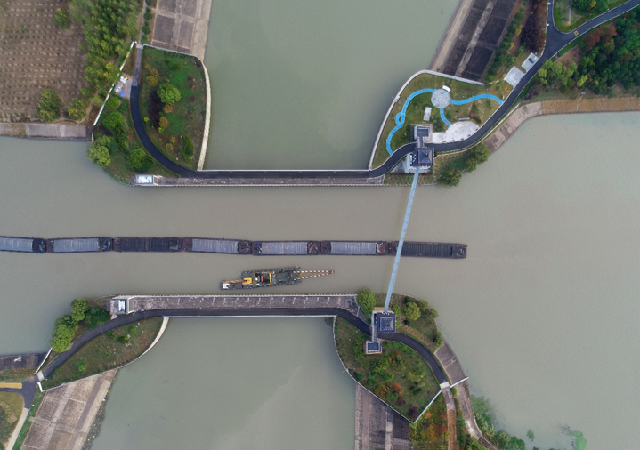 作為淮河入海水道二期工程的核心節(jié)點(diǎn),淮安水利樞紐大運(yùn)河水上立交建成便是"亞洲最大水立交"。京杭大運(yùn)河、蘇北灌溉總渠、淮河入海水道,三條載入史冊(cè)的人工水道在此交匯,"兩橫一縱"的格局間,藏著建設(shè)者們最棘手的難題。"二期工程要緊鄰布置,水系又密、水頭還高。"王洪玉抬手比劃著樞紐布局,"我們先做好基坑防滲工作,再通過(guò)開(kāi)挖臨時(shí)導(dǎo)航明渠來(lái)保障運(yùn)河航運(yùn),工程在緊鑼密鼓地推進(jìn)。"