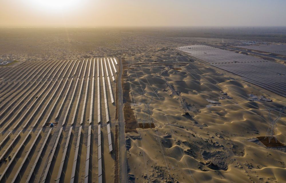 9月22日在新疆巴音郭楞蒙古自治州若羌縣拍攝的中國綠發(fā)新疆中綠電若羌400萬千瓦光伏項(xiàng)目(無人機(jī)照片)。該項(xiàng)目每年可發(fā)電69.08億千瓦時(shí),滿足南疆200萬戶家庭用電需求,減排208.24萬噸煤耗。