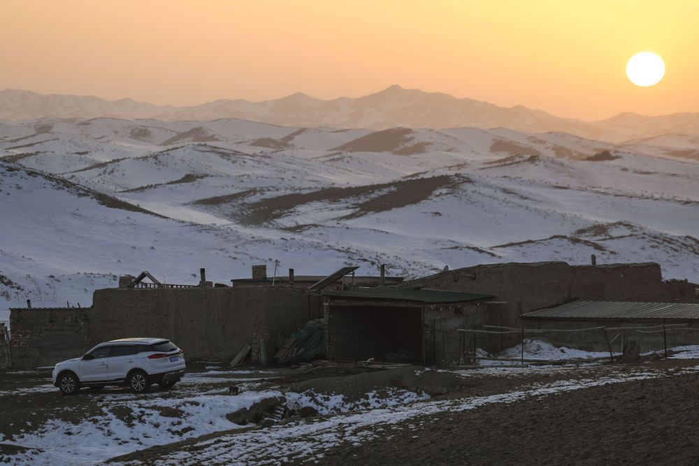 冬牧場(chǎng)上巴哈提家的房屋。屋旁的白色汽車(chē)是為慶祝小女兒昆樹(shù)阿克考上大學(xué)所買(mǎi)的禮物。(2023年12月1日攝)