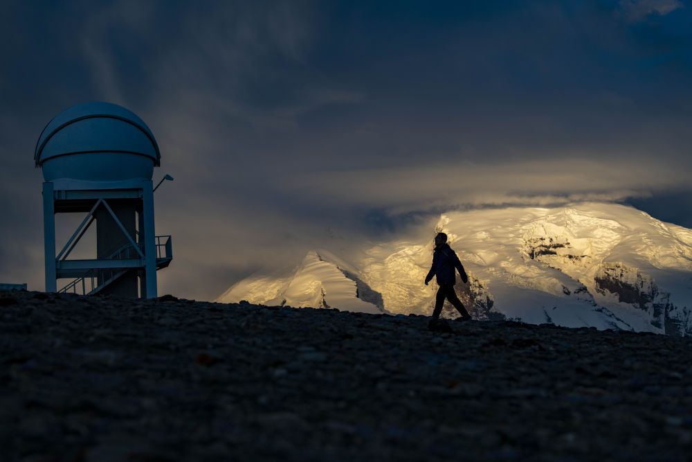 天文科技工作者馮國(guó)杰在中國(guó)科學(xué)院新疆天文臺(tái)慕士塔格觀測(cè)站內(nèi)巡查(2020年6月15日攝)。