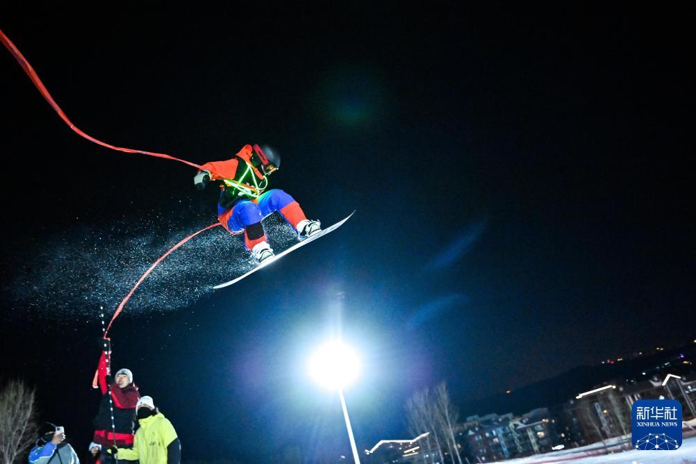 2022年12月10日,滑雪愛好者在位于吉林省吉林市的松花湖度假區(qū)V-PARK地形公園挑戰(zhàn)跳臺滑雪。新華社記者顏麟蘊攝