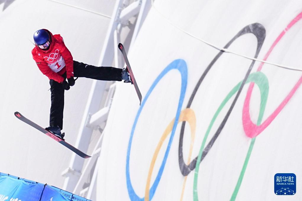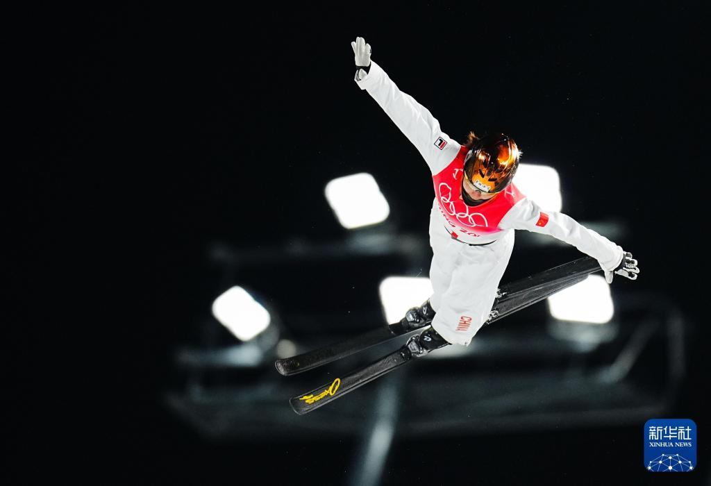 2022年2月14日,中國選手徐夢桃在北京2022年冬奧會自由式滑雪女子空中技巧決賽中奪得冠軍。新華社記者許暢攝
