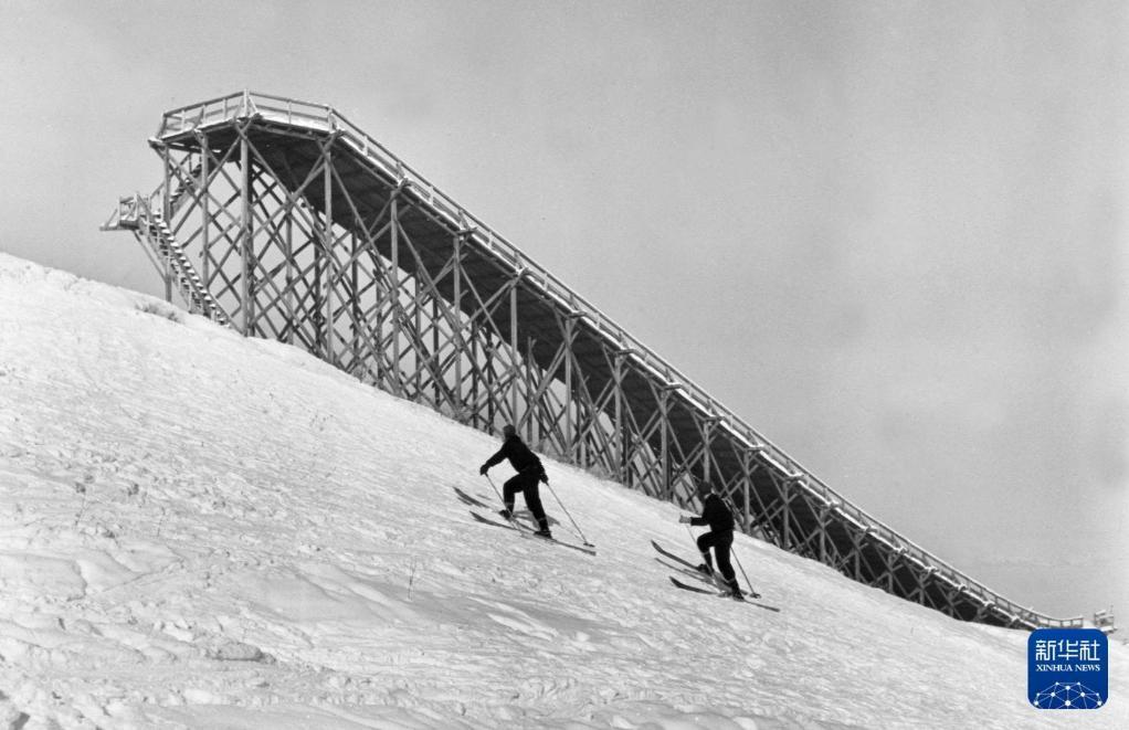 這是1957年拍攝的吉林省通化市的滑雪場。新華社記者胥志成攝