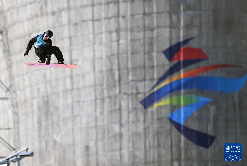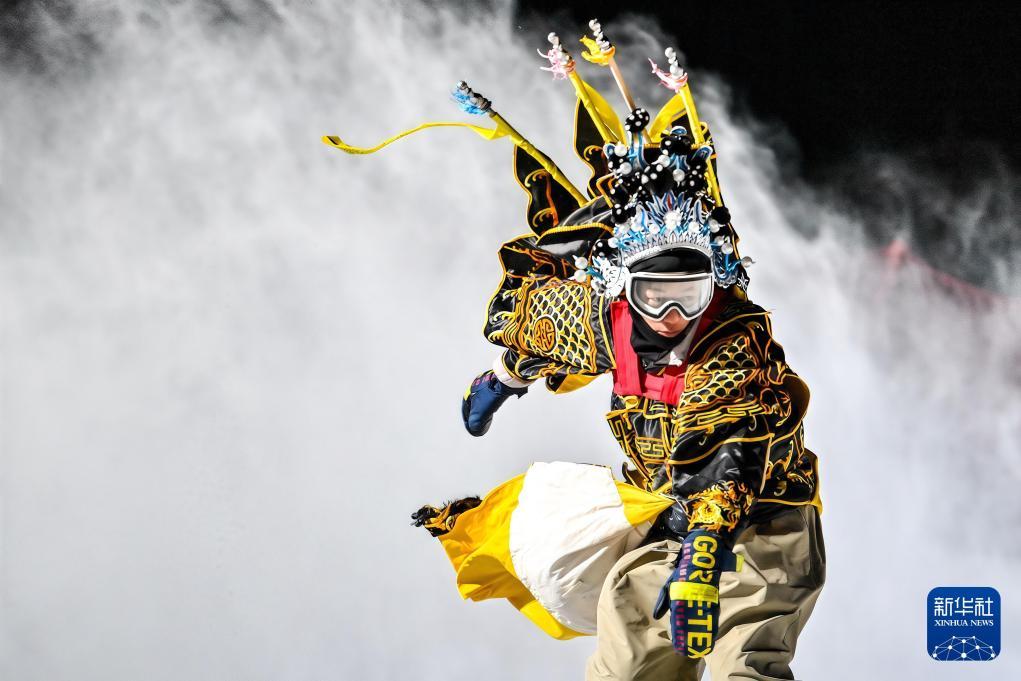 2022年2月15日,中國選手蘇翊鳴在北京2022年冬奧會單板滑雪男子大跳臺決賽中。新華社記者李尕攝