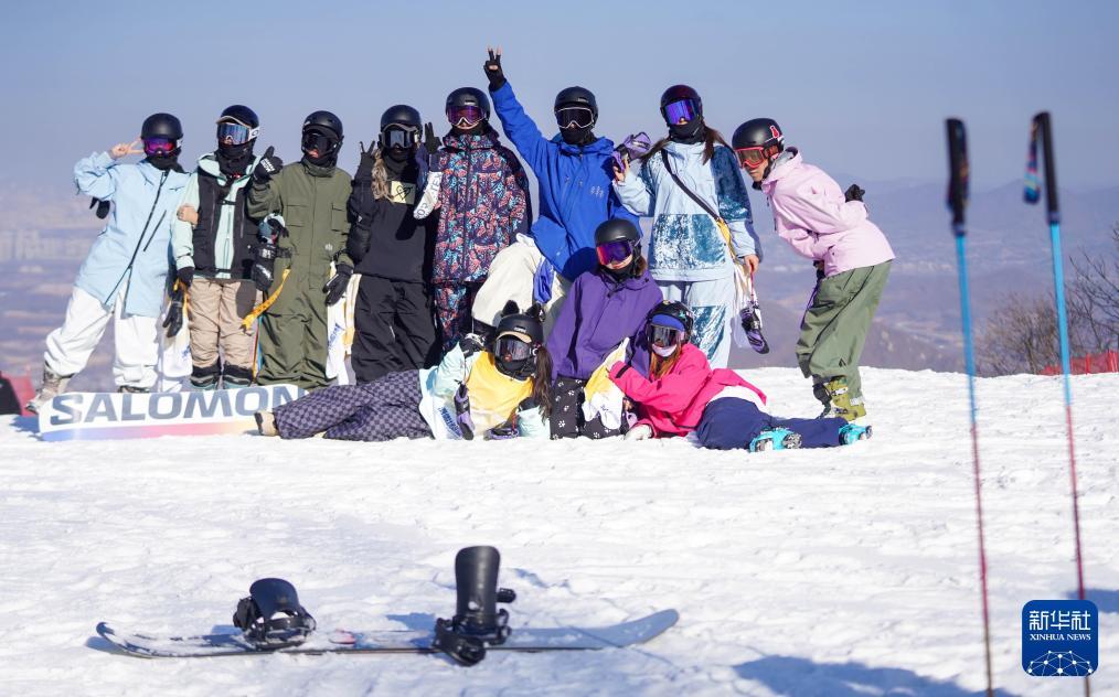 2025年1月27日,幾名滑雪愛好者在新疆絲綢之路山地度假區(qū)合影留念。新華社記者王菲攝