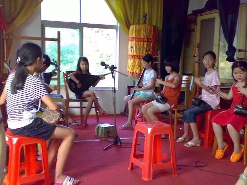 后排左數(shù)第四是莎莎 受訪者供圖 莎莎名叫李莎莎,是土生土長(zhǎng)的泉州晉江人,90后的她,學(xué)唱南音已經(jīng)有20個(gè)年頭。她還記得,最初學(xué)南音那年,她剛9歲。 “我奶奶喜歡看戲,我小時(shí)候經(jīng)常跟奶奶去我們當(dāng)?shù)氐哪弦羯缛タ磻?,開始我就是跟著去玩的。”莎莎說,起初,她只是覺得南音社里一群人聚在那里很熱鬧,而且每次去都有糖果吃。 但時(shí)間久了,耳濡目染之下,幼小的莎莎就成了南音社的一名小學(xué)員?!懊刻煜挛绶艑W(xué)后和周末,都要去社團(tuán)學(xué)習(xí)。”跟學(xué)習(xí)其他戲曲一樣,學(xué)唱南音也要經(jīng)歷一段艱難的蛻變過程,這個(gè)過程漫長(zhǎng)而又痛苦。 “南音的曲子最短的也有四五分鐘,長(zhǎng)的有半個(gè)小時(shí)以上,所有的唱詞都要背下來。還要學(xué)習(xí)琵琶、二弦、三弦等樂器?!鄙貞浾f,當(dāng)時(shí),自己每次都提前一個(gè)多小時(shí)到課堂,“一個(gè)人練譜子、背唱詞,就是想比別人記得快一點(diǎn)”。 但慢慢地 ,和莎莎一起學(xué)南音的小姐妹陸續(xù)離開了南音社。“最多的時(shí)候二三十個(gè)人,學(xué)到最后,只剩我們8個(gè)。”莎莎說,堅(jiān)持學(xué)下來的人少,除了學(xué)習(xí)難度大、需要背的東西多外,還有一個(gè)重要的原因,就是南音實(shí)在太古老了。 “這種傳統(tǒng)的劇種很多人聽不來,不喜歡這種咿咿呀呀的唱腔,小時(shí)候就經(jīng)常被人家取笑。”莎莎還記得。不僅如此,在泉州當(dāng)?shù)?,有在葬禮上請(qǐng)南音社團(tuán)演唱的習(xí)俗。因此,一度南音被一些人認(rèn)為是不入流的,而對(duì)于演唱南音的人,也難免會(huì)帶有偏見。 盡管如此,莎莎還是堅(jiān)持了下來,她花了七八年的時(shí)間,學(xué)會(huì)了南音的6種唱法和5種主要樂器。到現(xiàn)在,她能熟練演唱近80支南音曲目。 一度放棄南音 卻在新媒體上打開新大門