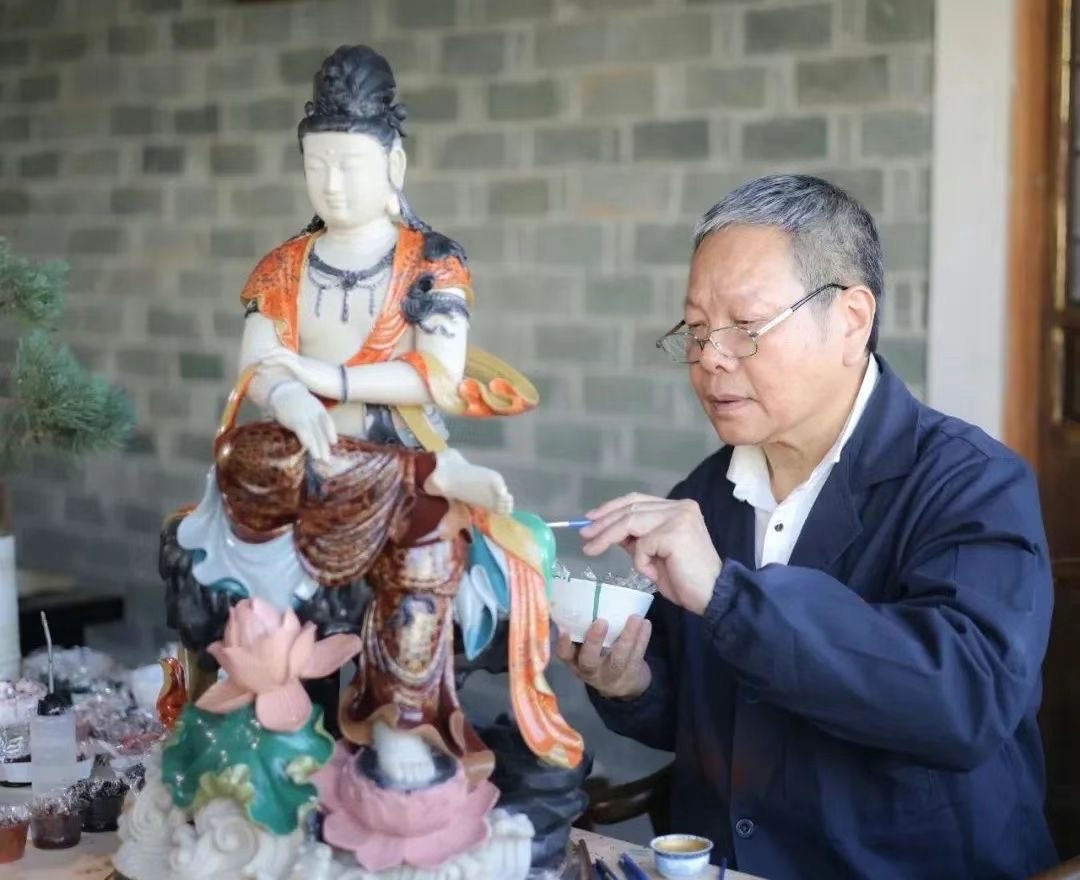 袁師永為作品上彩漆 雕漆古稱漆雕、剔紅、剔犀,專屬于福州的雕漆工藝,福犀則是雕漆的一種特殊的漆器制作工藝。在福州,除了聞名遐邇的脫胎漆器外,以福州剔犀雕漆技藝制作的“福犀”,也曾廣富盛名。然而在社會(huì)發(fā)展變遷中,福州剔犀雕漆技藝曾一度面臨失傳困境。二十世紀(jì)九十年代,為了讓“福犀”重現(xiàn)往日輝煌,袁師永決意復(fù)原福犀技藝。然而創(chuàng)作初期困難重重,袁師永告訴記者,“大漆多了,礦物質(zhì)少了,就會(huì)粘刀,導(dǎo)致刀拉不動(dòng);大漆少了,礦物質(zhì)多了,漆層就很脆,容易斷裂。”為此,袁師永花了一年多的時(shí)間反復(fù)試驗(yàn),最終確定了最合適的配比。 闖過(guò)原料的配比關(guān),接下來(lái)是更重要的耐心關(guān)——要剔出漆的質(zhì)感,呈現(xiàn)作品的立體感、縱深感。那么漆就要髹到一定的厚度,多達(dá)幾十層幾百層。但髹漆并不能一氣髹完,還要考慮漆層厚度對(duì)干濕膨脹情況的影響等。 經(jīng)過(guò)袁師永的不懈努力,福犀最終得以成功復(fù)原。他還另辟蹊徑,以人物刻畫為主,融合福州木雕與壽山石雕的技藝特色,弱化傳統(tǒng)福犀的實(shí)用性,展現(xiàn)經(jīng)典傳奇的佛教法會(huì)場(chǎng)景,從而形成了現(xiàn)代福犀的唯一性。 深浸漆藝之海多年的袁師永,依然孜孜以求,探索大漆的藝術(shù)奧秘,守望福州漆藝的文脈。袁師永說(shuō),目前他最大的目標(biāo)就是推進(jìn)福犀技藝的傳承保護(hù),并通過(guò)設(shè)立工作室、帶徒辦班、辦展等舉措,把包括福犀技藝在內(nèi)的福州漆藝推向全國(guó)乃至世界。 (本文圖片均由受訪者供圖) |