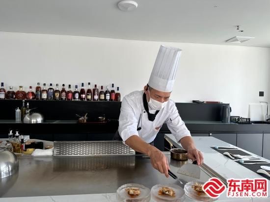 葉世芳正在做鐵板燒 東南網(wǎng)漳州4月9日訊(本網(wǎng)記者 陳惠華 通訊員 朱春燕 林曉紅 謝麗麗)“來東山,留東山,在東山....”這是臺胞葉世芳扎根東山的心路寫照。 如果說鐵板燒是葉世芳無法舍棄的“一生摯愛”,那么東山,便是葉世芳的“乍見之歡,久處仍怦然”。他在東山用一方鐵板,烹飪美味,品味“鄉(xiāng)情”,“飄香”兩岸,不負這“始于初見,止于終老”的浪漫。 在東山島南門灣的一頭,走過一段彎彎繞繞小路,來到灣縵鐵板燒餐飲店,葉世芳正在為圍坐一圈的客人烹飪美食。 熾熱的鐵板迸發(fā)出噼啪聲,香味迅速彌漫開來。葉世芳以熟練的動作,用手中的烹飪工具將食材翻炒、烘烤,擺出各種造型,為食客帶來了一場視覺和味覺的盛宴。 葉世芳從16歲就開始做餐飲業(yè)學徒,如今已經(jīng)是一個有著四十余年鐵板燒烹飪經(jīng)驗的大廚了。1999年,他就到上海擔任中國第一家鐵板燒餐飲店的主廚,幾十年來一直致力于兩岸餐飲文化的溝通融合。常年奔走于國內外各大城市進行鐵板燒餐飲文化交流學習的他日漸疲憊,此前,已近花甲之年的葉世芳有了想要退休返臺的想法。