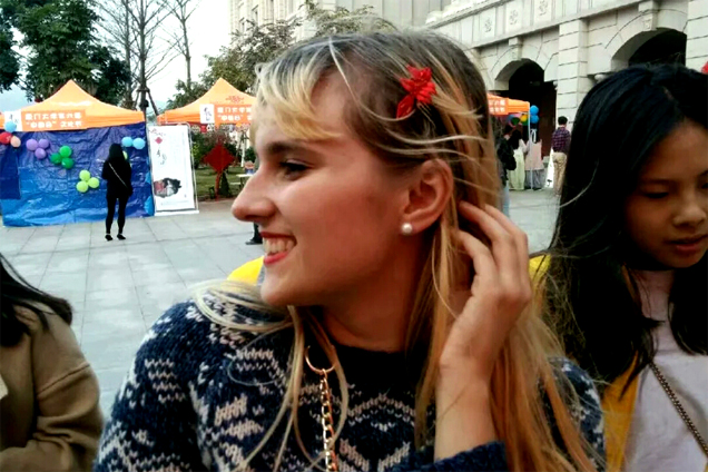 廈門大學(xué)的交流活動(dòng)中,外國(guó)友人佩戴春仔花。 受訪者供圖 在村子里,評(píng)比誰家的花做得好,就像一場(chǎng)人們口中的“選秀”。不僅每家每戶的巧婦人會(huì)溝通交流,更有不少人慕名而來。自從春仔花習(xí)俗獲評(píng)首批廈門市非物質(zhì)文化遺產(chǎn)后,前來取經(jīng)的人越來越多。 “有不少是訂貨的,他們到村口一問,想要什么花式的、什么價(jià)位的,村民們心里都有數(shù),就會(huì)推薦到相應(yīng)的人家。”洪曉瑜說,如今,也有不少手工愛好者前來,在這里待上一段時(shí)間,專門學(xué)習(xí)這門手藝,這其中也不乏來自臺(tái)灣的手藝人。 臺(tái)灣的春仔花是明朝后期閩南移民帶去的,在洪曉瑜看來,這是兩岸一衣帶水的緣分。一開始,臺(tái)灣當(dāng)?shù)氐牧?xí)俗并沒有洪厝這么講究,春仔花的花式花樣也不如洪厝齊全?!扒皫啄暧胁簧倥_(tái)灣的手藝人來參觀,我們也很開心有這樣的機(jī)會(huì)和他們交流?!焙闀澡ふf,因地域不同,春仔花在不同地區(qū)發(fā)展出了屬于自己的藝術(shù)特色,“臺(tái)灣有的地方一開始是用皺紋紙來做,也有的地方花比較小,臺(tái)灣手藝人來洪厝參觀學(xué)習(xí)后,我們給他們寄去一整套的春仔花及材料,我們這的寓意也慢慢融入他們的春仔花里”。2018年,臺(tái)灣纏花(春仔花)藝師陳惠美及其助理陳秀敏前來參加海峽兩岸民間藝術(shù)節(jié)之“傳統(tǒng)工藝DIY”活動(dòng),洪曉瑜同其他傳承人一道,進(jìn)行了現(xiàn)場(chǎng)交流和溝通。