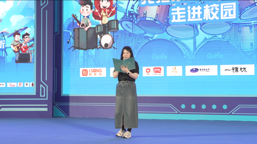 愛歌曲音樂平臺(tái)音樂總監(jiān)林嘉欣女士致辭 活動(dòng)現(xiàn)場(chǎng),文藝演出節(jié)目層出不窮,全國(guó)各地音樂界老師也通過VCR表示自己的祝賀,原唱歌手林輝、何珺潔對(duì)活動(dòng)主題曲“我把家鄉(xiāng)唱給你聽”深情演繹,隨后活動(dòng)正式開啟。