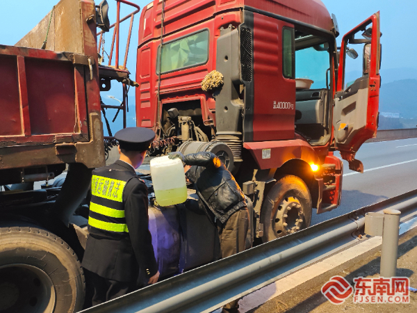 執(zhí)法員協(xié)助司機(jī)加油。寧德高速執(zhí)法支隊(duì)供圖 隱患不隔夜,守護(hù)不停歇。福安北中隊(duì)巡邏至尖峰頂隧道出口時(shí),隊(duì)員發(fā)現(xiàn)一輛貨車因油表故障熄火,??吭趶澋缿?yīng)急車道。司機(jī)未設(shè)置警示標(biāo)志,夜間能見度低,極易引發(fā)追尾事故。隊(duì)員立即在車后布設(shè)反光錐筒、開啟車載爆閃燈,并安排專人持指揮棒警示后方車輛。初春山間寒風(fēng)刺骨,執(zhí)法人員在低溫中堅(jiān)守一個(gè)多小時(shí),直至救援車輛抵達(dá)。隨后協(xié)助司機(jī)加油、檢修,并指導(dǎo)其學(xué)習(xí)高速公路應(yīng)急避險(xiǎn)規(guī)范。 寧德高速執(zhí)法支隊(duì)提醒廣大司乘朋友:出行前請檢查油量及車況;若遇車輛故障,務(wù)必靠邊停至應(yīng)急車道,開啟雙閃燈,車后150米處擺放三角警示牌;行經(jīng)村莊路段時(shí),切勿翻越護(hù)欄抄近路,請選擇安全通道通行。 群山綿延,守護(hù)無聲。寧德高速執(zhí)法員將繼續(xù)以腳步丈量責(zé)任,用行動(dòng)傳遞溫度,讓每一段歸途都多一份安心與溫暖。 |