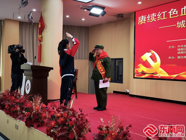 活動現場 東南網4月1日訊(通訊員 陳治中 文/圖)近日,莆田第五中學附屬學校禮堂內氣氛熱烈,一場以“聆聽紅色故事,傳承革命薪火”為主題的宣講活動在此舉行,旨在傳承紅色基因,弘揚愛國主義精神,引導青少年銘記歷史、厚植家國情懷。 活動在莊嚴的氛圍中拉開帷幕,學生代表為越戰(zhàn)老兵林文炳系上鮮艷的紅領巾,全體人員起立奏唱中華人民共和國國歌。隨后,越戰(zhàn)老兵林文炳走上講臺,深情講述其參戰(zhàn)經歷。