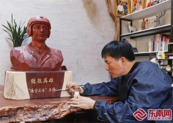 “??招l(wèi)士”王偉雕像 東南網(wǎng)4月2日訊(通訊員 陳文華 文/圖)連日來,莆田市荔城區(qū)傳統(tǒng)藝人以刀為筆、以藝傳情,用一件件飽含深情的紅色主題非遺作品,為革命先烈獻(xiàn)上穿越時(shí)空的崇高敬意。 4月1日,在興化府歷史文化街區(qū),莆田工藝美術(shù)師陳金瑞用莆田傳統(tǒng)木雕技藝,創(chuàng)作“??招l(wèi)士”王偉雕像?!坝⑿郾<倚l(wèi)國的大無畏精神要代代傳承,我們要讓大家知道,今天的和平是無數(shù)先烈用生命換來的?!标惤鹑疠p撫雕像,眼中閃爍著傳承人的堅(jiān)守。 而在兆豐皮雕文化非遺體驗(yàn)中心,莆田皮雕非遺傳承人、退役軍人陳志鴻將非遺文化融入紅色教育,用新型皮革材料制作成英模畫像和“緬懷先烈”主題海報(bào),以此表達(dá)對革命先烈的緬懷之情和崇高敬意?!坝密娐蒙木毦偷慕橙司?,讓紅色記憶在非遺創(chuàng)作中煥發(fā)新生,這是對革命先烈最好的紀(jì)念。”陳志鴻如是說。 當(dāng)非遺遇見紅色,傳統(tǒng)技藝便有了時(shí)代心跳。傳統(tǒng)藝人讓雕刻刀成為書寫紅色家書的筆,讓皮革紋理化作傳承英烈精神的經(jīng)緯,在新時(shí)代新征程中賡續(xù)紅色血脈。 |