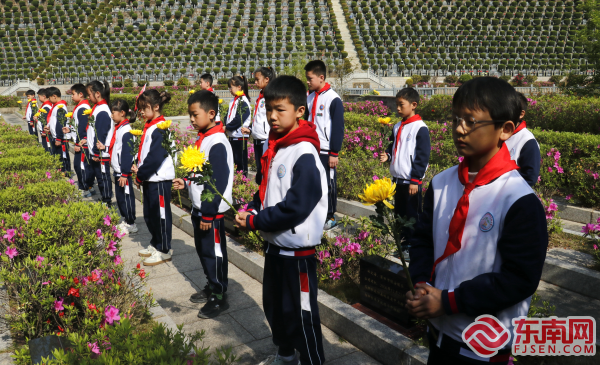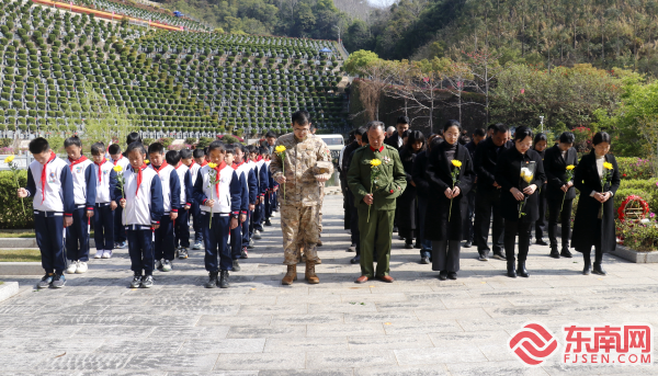 鞠躬默哀 東南網(wǎng)4月3日訊(通訊員 陳文華 文/圖)清明時(shí)節(jié)祭忠魂,英烈精神勵(lì)后人。4月2日,由莆田市荔城區(qū)新時(shí)代文明實(shí)踐中心、區(qū)委文明辦、區(qū)教育局、區(qū)退役軍人事務(wù)局、共青團(tuán)荔城區(qū)委、區(qū)人武部政工科主辦的荔城區(qū)“賡續(xù)?2025?百園千校清明祭英烈”活動(dòng)在荔城區(qū)烈士陵園舉行,深切緬懷革命先烈的豐功偉績(jī)。 位于莆田二十四景之一“壺山致雨”山麓的烈士陵園,蒼松翠柏,青山環(huán)抱,“人民英雄永垂不朽”八個(gè)大字燙金大字格外醒目。全體人員齊聚在烈士墓碑前,緬懷為民族獨(dú)立和人民解放事業(yè)英勇獻(xiàn)身的革命先烈。 上午9時(shí),祭英烈儀式正式開(kāi)始,全體人員整齊列隊(duì),莊嚴(yán)肅立,奏唱中華人民共和國(guó)國(guó)歌,向烈士鞠躬默哀,銘記歷史,追憶先烈們的不朽功勛;少先隊(duì)員獻(xiàn)唱《我們是共產(chǎn)主義接班人》。隨后,全體人員手持鮮花緩慢走到烈士墓前瞻仰革命先烈,敬獻(xiàn)鮮花,寄托哀思。