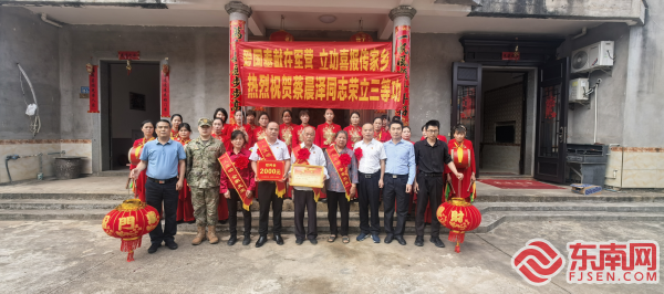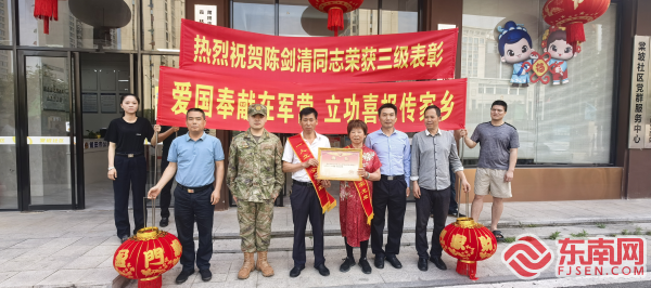 送喜報 東南網(wǎng)5月6日訊(通訊員 曾德喜 李琳 文/圖)為弘揚擁軍優(yōu)屬的光榮傳統(tǒng),營造軍屬光榮的濃厚氛圍,近日,莆田市城廂區(qū)退役軍人事務(wù)局聯(lián)合區(qū)人武部、街道武裝部、退役軍人服務(wù)站一同前往東海鎮(zhèn)、霞林街道,為3位榮立三等功(三級表彰)的軍人家庭送去立功喜報,與軍屬分享榮耀及喜悅。 每到一處,送喜報小組都向立功現(xiàn)役軍人家屬佩戴綬帶、送上立功喜報和慰問金,并與軍屬們親切交談,詳細(xì)了解他們的家庭生活狀況,對軍屬們的大力支持致以崇高敬意,感謝他們?yōu)閲澜ㄔO(shè)培養(yǎng)優(yōu)秀人才。