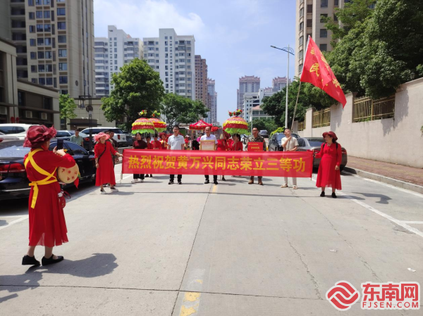 送喜報(bào) 東南網(wǎng)5月16日訊(通訊員 胡彰彬 文/圖)為進(jìn)一步弘揚(yáng)擁軍優(yōu)屬優(yōu)良傳統(tǒng),增強(qiáng)軍人軍屬榮譽(yù)感,5月15日上午,莆田市秀嶼區(qū)退役軍人事務(wù)局聯(lián)合笏石街道工作人員,一同前往笏石街道吳黃村為榮立“三等功”的黃萬(wàn)興家屬送來(lái)喜報(bào)和慰問(wèn)金。 “咚鏘咚鏘咚咚鏘、咚咚鏘……”伴隨著一陣陣歡快而熱烈的鑼鼓聲,一條橫幅高高掛起,“熱烈祝賀黃萬(wàn)興同志榮立三等功”字樣格外耀眼。送喜報(bào)隊(duì)伍一路敲鑼打鼓來(lái)到立功人員家中,為黃萬(wàn)興父母佩戴“一人立功,全家光榮”綬帶和大紅花,將立功喜報(bào)、慰問(wèn)金送到黃萬(wàn)興父母手中,向他們表示衷心的祝賀,并送上黨和政府的深切關(guān)懷。 立功受獎(jiǎng)的背后凝結(jié)著軍人矢志強(qiáng)軍的心血和汗水,承載著軍人使命高于生命的責(zé)任與榮譽(yù)。而深入開(kāi)展送喜報(bào)活動(dòng),既是對(duì)軍人榮譽(yù)的尊崇,更讓軍人家屬感受到社會(huì)的關(guān)愛(ài)與尊重,進(jìn)一步營(yíng)造“一人立功,全家光榮”的濃厚社會(huì)氛圍,讓尊崇秀嶼更加尊崇,讓“光榮之家”更加光榮。 |