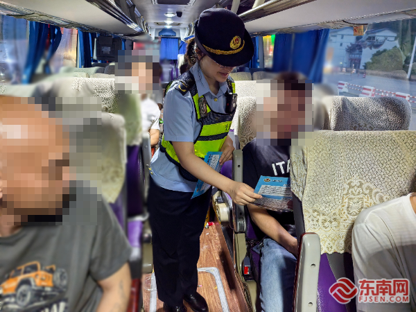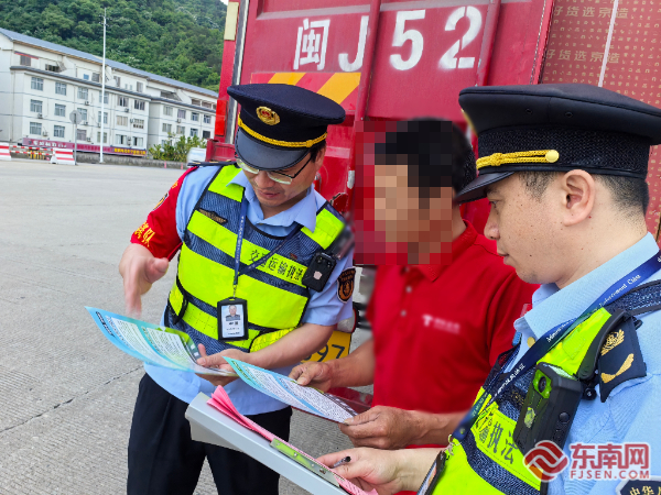 民法典普法宣傳。寧德高速執(zhí)法支隊(duì)供圖 行動(dòng)前,大隊(duì)結(jié)合轄區(qū)車流特點(diǎn)精密部署,調(diào)配10名執(zhí)法人員、出動(dòng)4臺(tái)執(zhí)法車輛,采取“定點(diǎn)檢查+動(dòng)態(tài)巡查”模式,對(duì)過往車輛進(jìn)行全覆蓋排查。執(zhí)法人員嚴(yán)格核查客運(yùn)班線車輛線路牌、旅游包車合同、?;愤\(yùn)輸押運(yùn)資質(zhì)及貨運(yùn)車輛裝載情況,同步檢查車輛營(yíng)運(yùn)資質(zhì)、駕駛員從業(yè)資格,累計(jì)檢查各類車輛30輛次。