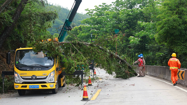 工作人員將傾斜路樹(shù)分段切割并運(yùn)離 此次行動(dòng)共投入14人,調(diào)配油鋸、養(yǎng)護(hù)車、高空作業(yè)車等機(jī)械設(shè)備協(xié)同作業(yè)。下一步,該分中心將繼續(xù)加強(qiáng)對(duì)管養(yǎng)路段的路樹(shù)養(yǎng)護(hù)管理,定期進(jìn)行修剪,確保公路的安全暢通和美觀整潔,全力保障汛期道路安全。 |