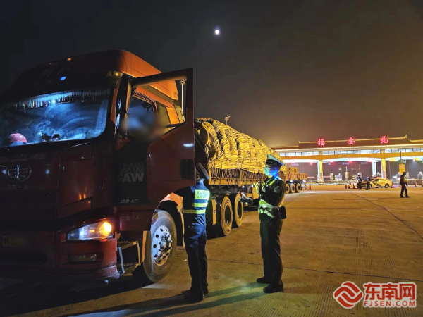 執(zhí)法檢查。寧德高速執(zhí)法支隊供圖 行動中,雙方人員針對夜間車流特點,采取定點檢查與流動巡查相結(jié)合的方式,依托收費站磅秤等稱重設(shè)備,對過往貨運車輛、旅游包車、客運班車及危險貨物運輸車輛逐一排查。對于普通貨物運輸車輛,執(zhí)法人員除核查載重數(shù)據(jù)外,還使用皮尺、卷尺等工具,細(xì)致測量車輛裝載貨物的長、寬、高,嚴(yán)查超高、超寬、超長等違法情形;針對“兩客一?!避囕v,同步檢查車輛資質(zhì)、駕駛員從業(yè)資格及貨物裝載合規(guī)性。