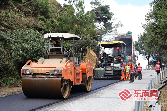 正在鋪瀝青的國道358線安溪段。 泉州市公路中心 供圖 |