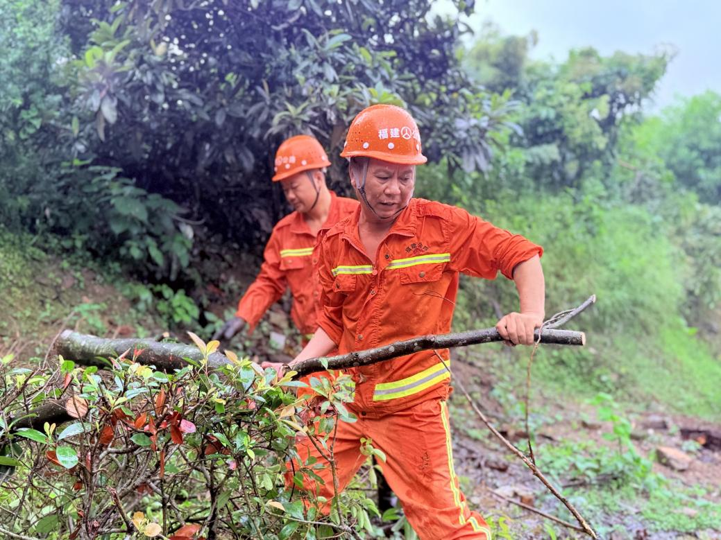 陳傳光在G104線清理邊溝(連江公路中心供圖) 這幾天,陳傳光幾乎是“連軸轉(zhuǎn)”。白天,他帶著隊(duì)員檢查橋梁涵洞、高邊坡、排水設(shè)施等關(guān)鍵點(diǎn)位;夜晚,他又開(kāi)車(chē)外出巡查交通安全設(shè)施。他的眼里布滿血絲,但腳步始終不停歇。7月9日上午,連江縣啟動(dòng)防暴雨Ⅱ級(jí)響應(yīng),雨勢(shì)不斷增強(qiáng)。正在玉泉大橋巡查的陳傳光接到險(xiǎn)情報(bào)告:104國(guó)道丹陽(yáng)鎮(zhèn)山兜村路段一棵大樹(shù)倒伏,阻斷道路,交通受阻。他立刻掉轉(zhuǎn)方向,帶著隊(duì)員火速趕往現(xiàn)場(chǎng)。 “一刻都不能耽誤!”現(xiàn)場(chǎng),一棵粗大的樹(shù)干橫在路中央,車(chē)輛無(wú)法通行。陳傳光迅速組織分工,安排人員配合交警指揮交通,自己則拿起油鋸沖到前方作業(yè)。雨水沿著安全帽流進(jìn)脖子,油鋸的震動(dòng)讓他虎口發(fā)麻。他不時(shí)眨眼驅(qū)散被雨水打濕的視線,卻始終沒(méi)有停下手中的動(dòng)作?!澳贻p的往后退,我來(lái)。”他還下意識(shí)擋在年輕隊(duì)員身前。僅用半小時(shí),路障就被清除,交通順利恢復(fù)。