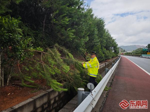 處理倒伏樹(shù)木。寧德高速執(zhí)法支隊(duì)供圖 與此同時(shí),大隊(duì)加密了對(duì)轄區(qū)在建施工項(xiàng)目的巡查頻次與安全監(jiān)管力度。執(zhí)法人員重點(diǎn)檢查施工現(xiàn)場(chǎng)安全設(shè)施及工程設(shè)備安全性能,并加強(qiáng)現(xiàn)場(chǎng)安全提醒,督促施工單位嚴(yán)格落實(shí)臺(tái)風(fēng)天氣安全防范措施。對(duì)于存在重大風(fēng)險(xiǎn)隱患或不符合安全要求的施工作業(yè),則堅(jiān)決要求停工整改,切實(shí)保障施工人員及道路通行安全。