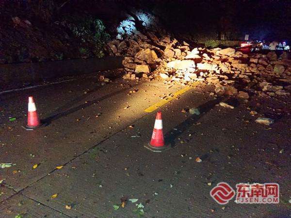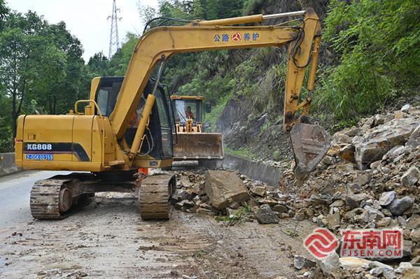 7月21日晚,省道308線沙縣區(qū)長紅村路段發(fā)生山體崩塌,石塊影響道路安全通行。 東南網(wǎng)7月23日訊(通訊員 徐紫瑩)近日,短時(shí)強(qiáng)降雨突襲沙縣區(qū),落石、倒伏樹木占據(jù)多處路面,影響通行安全。三明市公路事業(yè)發(fā)展中心沙縣分中心全體職工晝夜不息,在暴雨與險(xiǎn)情中展開與時(shí)間的競速賽。 7月21日傍晚,一陣強(qiáng)降雨剛剛過去,高砂公路站職工在國道205線龍江村路段發(fā)現(xiàn)倒伏樹木,占據(jù)半幅路面。他們披上雨衣、提起油鋸便沖入雨中,不顧大風(fēng)掀起的雨衣和沾滿鋸末的臉頰。經(jīng)過半小時(shí)疾速清理,他們將道路安全隱患清除。 當(dāng)晚9時(shí)許,在省道308線長紅村路段,隨著一聲巨響——約300m3土石轟然傾瀉,石塊攔住了過往群眾的通行道路,現(xiàn)場車隊(duì)排起長龍。大洛公路站站長林新清到達(dá)現(xiàn)場后,安排專人觀察邊坡穩(wěn)定情況,并組織人員對(duì)現(xiàn)場進(jìn)行安全布控。鏟車就位后立即開展清理落石工作,在各方配合下,近兩小時(shí)緊張作業(yè)后,該路段恢復(fù)通行狀態(tài)。