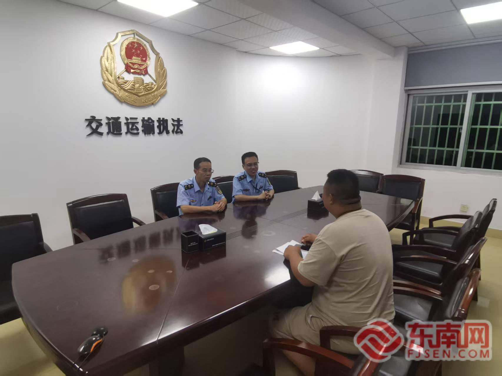 發(fā)現(xiàn)一輛裝載不可解體污水處理器部件的蘇B50xx7貨車存在明顯的幾何超限問題。寧德高速執(zhí)法支隊供圖 在安全區(qū)域,執(zhí)法人員嚴格履行程序,對車輛及貨物進行勘驗,確認其違法事實;高速交警同步查處相關(guān)交通安全違法行為。依據(jù)《公路安全保護條例》等法規(guī),執(zhí)法人員對當事人徐師傅未執(zhí)行護送方案的行為依法進行了處罰,并責令其立即整改,堅決守住了高速公路安全底線。 處罰決定下達后,徐師傅情緒激動,表示難以接受。執(zhí)法人員并未簡單處理,而是遞上礦泉水、送上紙巾,耐心安撫其情緒。同時,開展“說理式執(zhí)法”,清晰闡釋幾何超限且無押運車輛在高速行駛中的巨大風險,分析其對自身及公共安全的嚴重威脅,并詳細告知合法合規(guī)執(zhí)行護送方案的具體流程和要求。 了解到徐師傅對后續(xù)合規(guī)運輸?shù)拿悦#瑘?zhí)法人員主動延伸服務(wù)。他們不僅講解政策,更針對徐師傅此次運輸?shù)呢浳锾攸c和目的地,結(jié)合轄區(qū)路況,幫助其重新規(guī)劃了更安全、更經(jīng)濟的運輸路線,并指導他制定了詳細的護送方案。執(zhí)法人員真誠的態(tài)度、有理有據(jù)的解釋、細致入微的關(guān)懷以及實實在在的路線和方案指導,逐漸融化了徐師傅的抵觸情緒。