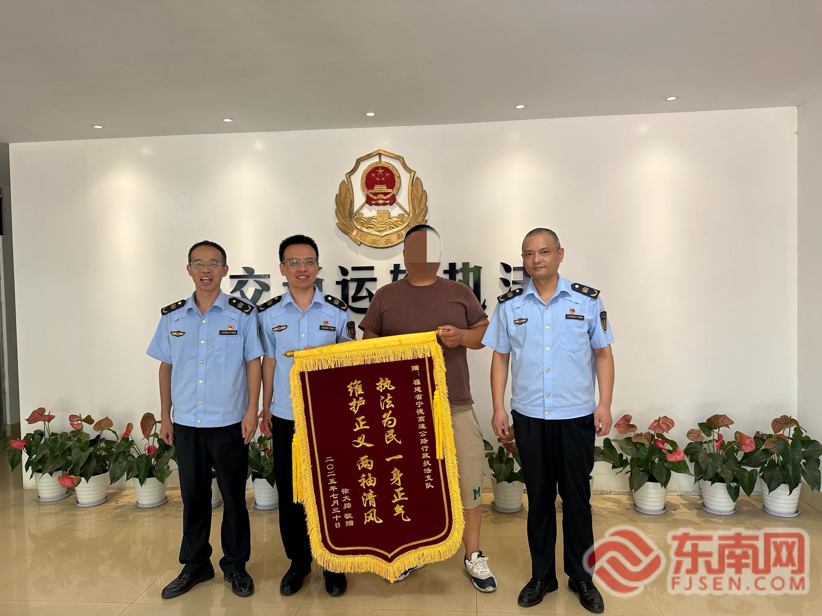 東南網(wǎng)8月1日訊(通訊員 黃婕琳 張彥夫)近日,寧德高速執(zhí)法支隊收到一面來自貨車司機徐師傅的致謝錦旗。錦旗上“執(zhí)法為民一身正氣維護正義兩袖清風”的字樣,飽含著當事人對執(zhí)法人員既堅守安全底線又提供暖心服務(wù)的由衷感謝。這面錦旗,源于該支隊一次成功化解超限運輸隱患的溫情執(zhí)法行動。