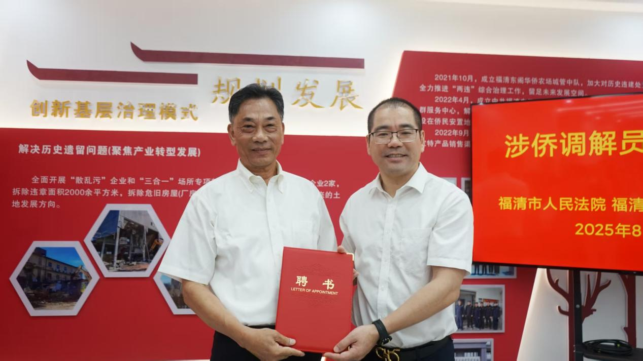 在涉僑調(diào)解員聘任環(huán)節(jié),陳學凱院長為8位涉僑調(diào)解員逐一頒發(fā)聘書。這些調(diào)解員將與法院、僑聯(lián)緊密配合,充分發(fā)揮熟悉僑情、貼近僑胞的優(yōu)勢,在涉僑糾紛化解中搭建“緩沖帶”,推動矛盾糾紛高效解決,助力維護僑鄉(xiāng)和諧穩(wěn)定。