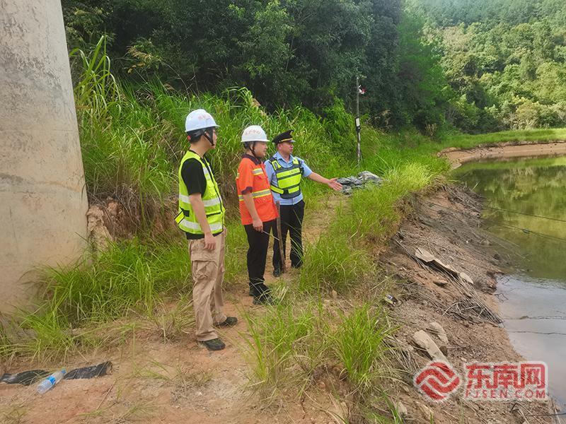 聯(lián)合高速交警現(xiàn)場。寧德高速執(zhí)法支隊供圖 據(jù)了解,該魚塘水面與橋墩基礎最近處不足3米,長期積水可能導致橋梁樁基混凝土碳化、鋼筋銹蝕,嚴重威脅橋梁結構安全。作為閩東地區(qū)交通樞紐,該路段節(jié)假日車流密集,隱患危害程度尤為突出。