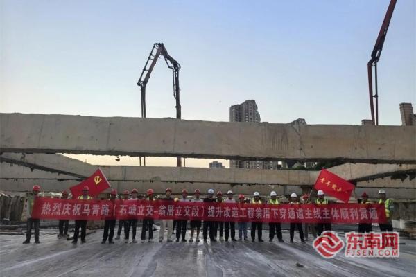 翁厝下穿通道主線主體正式貫通(廈門公路中心供圖) 東南網10月27日訊(本網記者 劉瑋 通訊員 林萍)10月19日凌晨,隨著最后一方混凝土順利澆筑,馬青路(石塘立交-翁厝立交段)提升改造工程(下稱“馬青路項目”)翁厝下穿通道主線主體正式貫通,標志著該段下穿通道順利連通成線,即將開放通行,為實現(xiàn)全程無紅綠燈快速通行提供重要支撐。