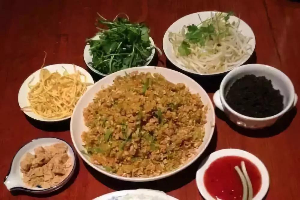 它用豆皮,裹上剁碎的精肉、荸薺、蔥等,包成條狀,再放下油鍋炸成焦黃,切成幾段,蘸佐料進食,香、酥、脆、鮮,妙不可言。