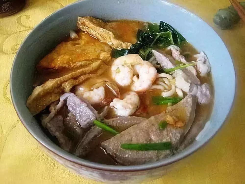 沙茶面→ 沙茶面是廈門的經(jīng)典面食。金黃帶著紅亮的油花,迷醉人的其實是花生、蝦米、辣椒、沙姜等煸炒熬制出的湯頭,又甜又辣,令人垂涎。