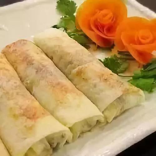 薄餅風(fēng)味獨特。主要以春卷皮、包菜、胡蘿卜、豬五花肉、凈加力魚肉、蝦仁、豌豆苗、豆干、青蒜、冬筍為食材。