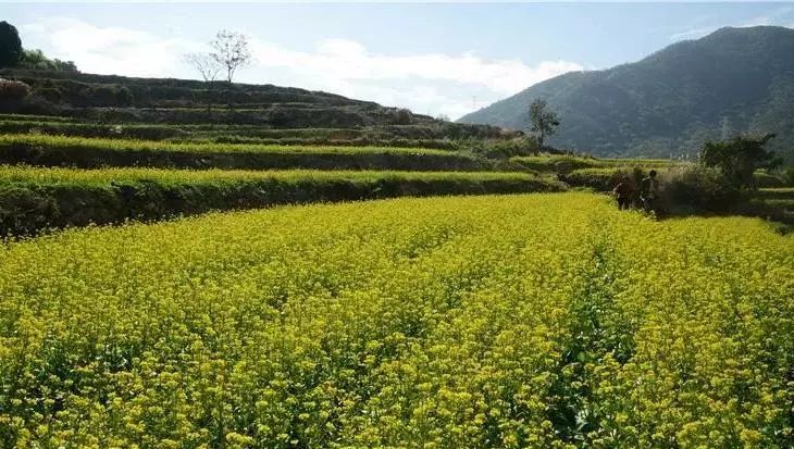 鋤山村的油菜花種植在山腰上的梯田里,油菜花層層疊疊,別有一番美感。