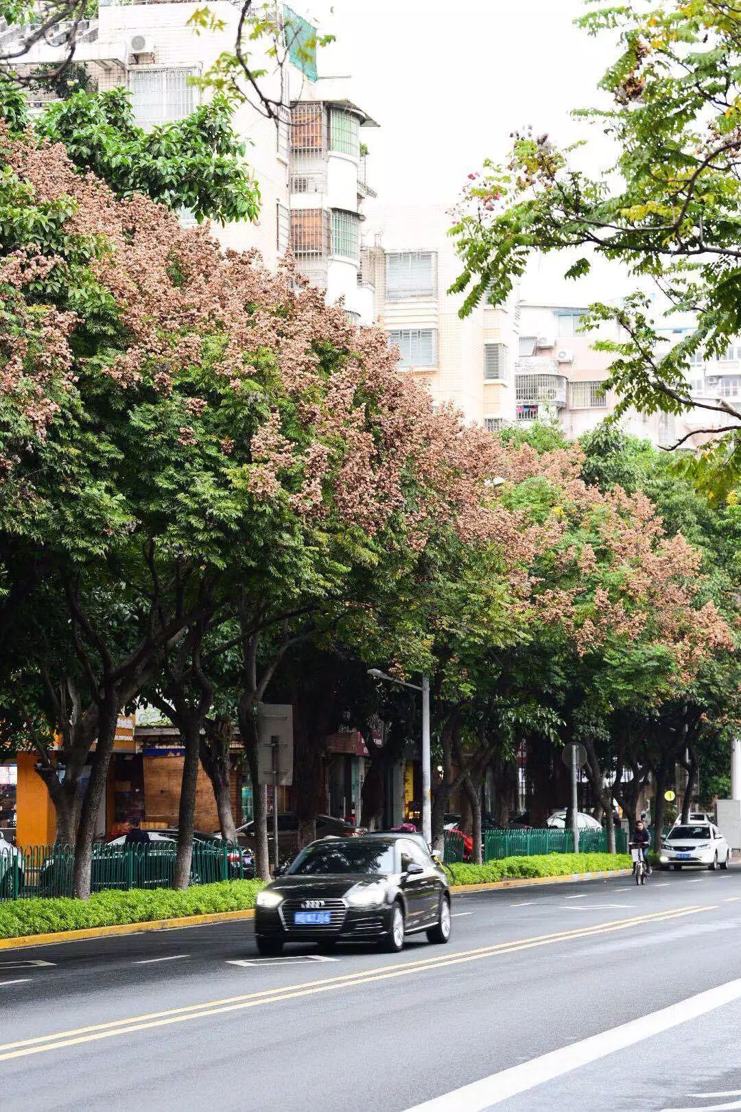 謝雨真 攝 褐 臺(tái)灣欒樹 賞花點(diǎn):和寧路 和寧路兩側(cè)種植的都是臺(tái)灣欒樹,進(jìn)入冬季后,這條路的色彩起了明顯的變化。10月初,這里臺(tái)灣欒樹的色彩主要還是以黃色和紅色為主,而現(xiàn)在已經(jīng)轉(zhuǎn)為褐色。