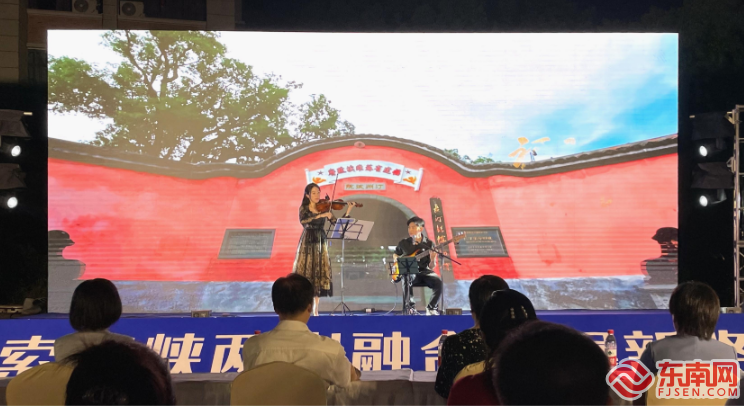 開幕式現(xiàn)場表演。東南網(wǎng)記者 莊宇婧 攝 開幕式上,來自臺灣的青年夫妻組合張家豪和林佳臻帶來《漂洋過海來看你》《我們同唱一首歌》等曲目,唱響兩岸情緣,福建人民藝術(shù)劇院藝術(shù)家們表演的《茉莉情緣》小品、雜技《相遇——雙人技巧》、閩劇《王蓮蓮拜香·盤答》、古琴《流水》等一系列精彩節(jié)目輪番上演,為大家?guī)砹艘粓鑫乃囀⒀纭?/p> 其中,《茉莉情緣》小品講述的是從臺灣回到家鄉(xiāng)尋找童年記憶的老奶奶的故事,以茉莉花茶為故事線索,闡述兩岸人民共同在福建家鄉(xiāng)生活的美好記憶?,F(xiàn)場通過福建人民藝術(shù)劇院藝術(shù)家們的動(dòng)情演繹不僅讓觀眾們看到一場精彩的小品演出,還向觀眾嘉賓傳達(dá)了兩岸親人們時(shí)刻彼此牽掛的深深情義。 以文旅促融合,傳承中華優(yōu)秀傳統(tǒng)文化