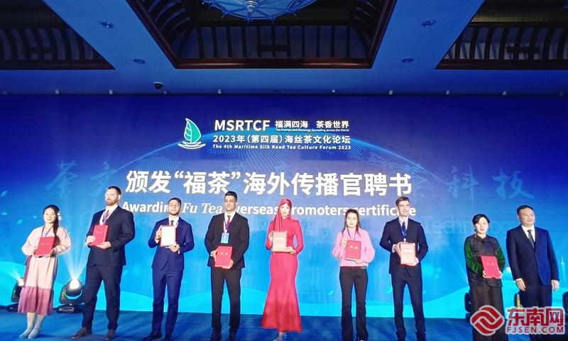 頒發(fā)“福茶”海外傳播官聘書。東南網(wǎng)記者 林先昌 攝 論壇由福建省委宣傳部、省農(nóng)業(yè)農(nóng)村廳、省文化和旅游廳、省歸國華僑聯(lián)合會聯(lián)合指導,福建日報社主辦,南平市委宣傳部、武夷山市人民政府、福建日報社東南網(wǎng)承辦,武夷山市委宣傳部、福建東南網(wǎng)海外傳媒有限公司作為執(zhí)行單位,福建省人民對外友好協(xié)會、省政協(xié)農(nóng)業(yè)農(nóng)村委、中國茶葉學會、中國茶文化國際交流協(xié)會、海峽兩岸茶業(yè)交流協(xié)會、福建省茶葉學會、福建省茶葉流通協(xié)會等單位支持。 |