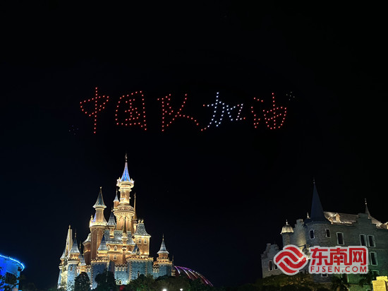 無人機(jī)表演編排出“中國(guó)隊(duì)加油”隊(duì)形。景區(qū)供圖