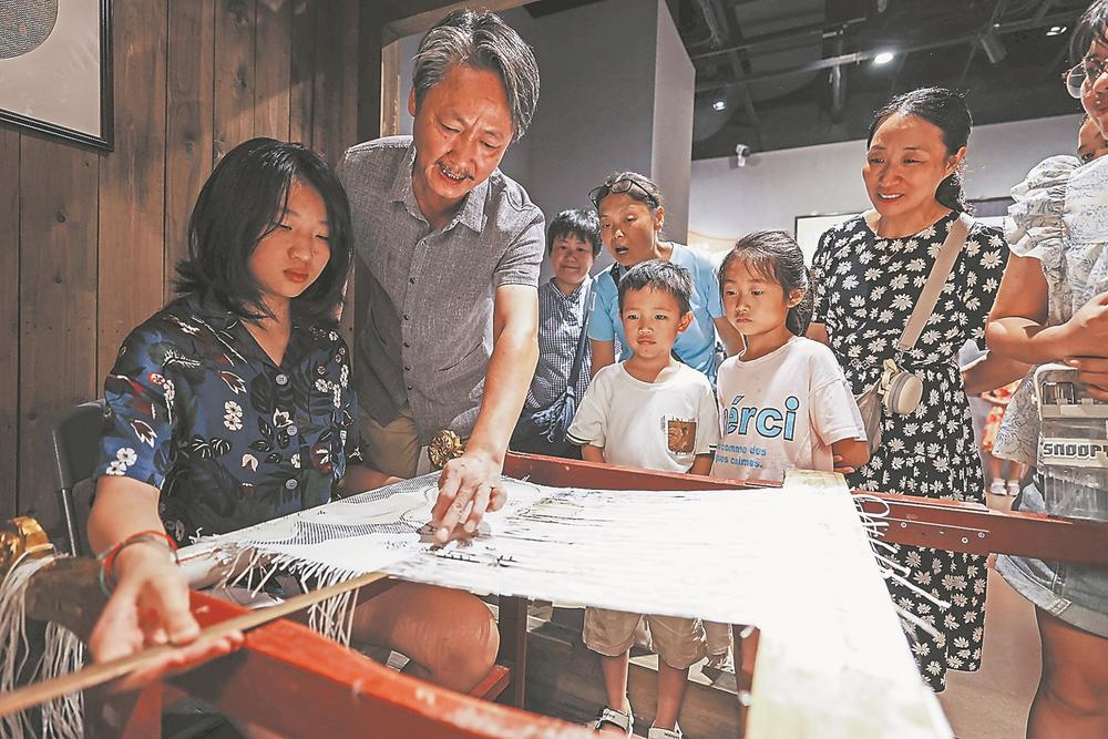 暑假期間,博物館受到市民、游客的熱捧。8月3日,筆者走進(jìn)泉州市非物質(zhì)文化遺產(chǎn)館,不少家長(zhǎng)帶著孩子前來(lái)感受非遺文化魅力,豐富假期生活。圖為小朋友在非遺項(xiàng)目制作體驗(yàn)點(diǎn)動(dòng)手體驗(yàn)。 林升 攝 |