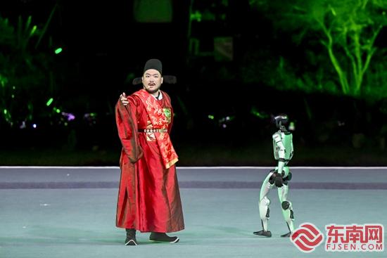晚會(huì)以"綠韻長(zhǎng)泰"為序章徐徐展開(kāi),通過(guò)《狀元?問(wèn)》情景劇與《綠韻長(zhǎng)泰》生態(tài)舞蹈的沉浸式演繹,生動(dòng)再現(xiàn)千年古邑的人文積淀。在“四季飄香”篇章中,非遺瑰寶煥發(fā)新彩——國(guó)家級(jí)非遺古儺舞與省級(jí)非遺何陽(yáng)拳、大鼓涼傘同臺(tái)輝映,漳州方言說(shuō)古藝術(shù)攜觀眾穿越歷史長(zhǎng)河,郭源源清麗婉轉(zhuǎn)的《遇見(jiàn)》更添詩(shī)意。 “繁花似錦”單元?jiǎng)?chuàng)新融合傳統(tǒng)與現(xiàn)代元素,既有鼓樂(lè)與提線木偶的跨時(shí)空對(duì)話,又有童聲合唱《我在這里長(zhǎng)大》的溫情述說(shuō),搭配時(shí)尚說(shuō)唱《醉美漳州》的律動(dòng)節(jié)奏,展現(xiàn)傳統(tǒng)與現(xiàn)代的和諧共生。壓軸的“山河共情”篇章高潮迭起,閩臺(tái)歌手聯(lián)袂獻(xiàn)唱《聲聲不息》架起情感橋梁,驚險(xiǎn)雜技《美味漳州》以肢體語(yǔ)言詮釋美食文化,兩岸藝術(shù)家同臺(tái)演繹歌仔戲更彰顯文化同源。