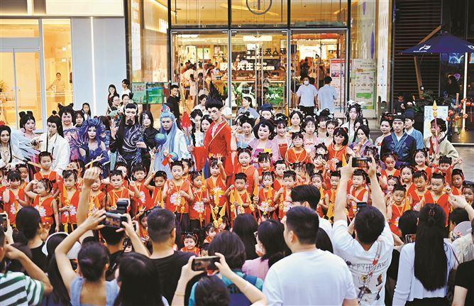 端午假期,廈門市商圈紛紛策劃兒童節(jié)相關(guān)主題節(jié)目。圖為灣悅城組織的“百吒巡游”活動(dòng)。(記者 林銘鴻 攝)
