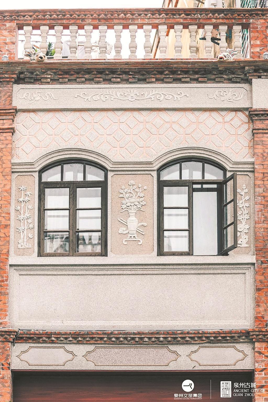 火焰窗削烈日,弧窗兜晚霞,三聯(lián)窗把街景裁成連環(huán)畫。當(dāng)整條街被磚紅和水刷石白統(tǒng)治,總有幾扇“叛逆”的藍窗和黃紋跳出來,把閩南的天空偷來貼在墻上。 參與中山路修繕的莊海濱介紹說,小巧玲瓏的圓窗偏愛點綴于小樓,中大型的宅邸則青睞方窗或那氣勢獨特的火焰窗。每一扇窗,都暗藏玄機:綿延不斷的回型紋,是福壽吉祥的密碼;優(yōu)雅重復(fù)的萬字紋,訴說著萬福萬壽的祈愿;流轉(zhuǎn)不息的云紋,則寄托著平步青云的向往?!耙淮耙皇澜纭?,古老的閩南營造智慧,在方寸之間將“窗牖無拘,隨宜合用”的東方美學(xué),演繹得淋漓盡致。(泉州晚報融媒體記者 王金植 通訊員 王越樂 賴東榮 文/圖) |