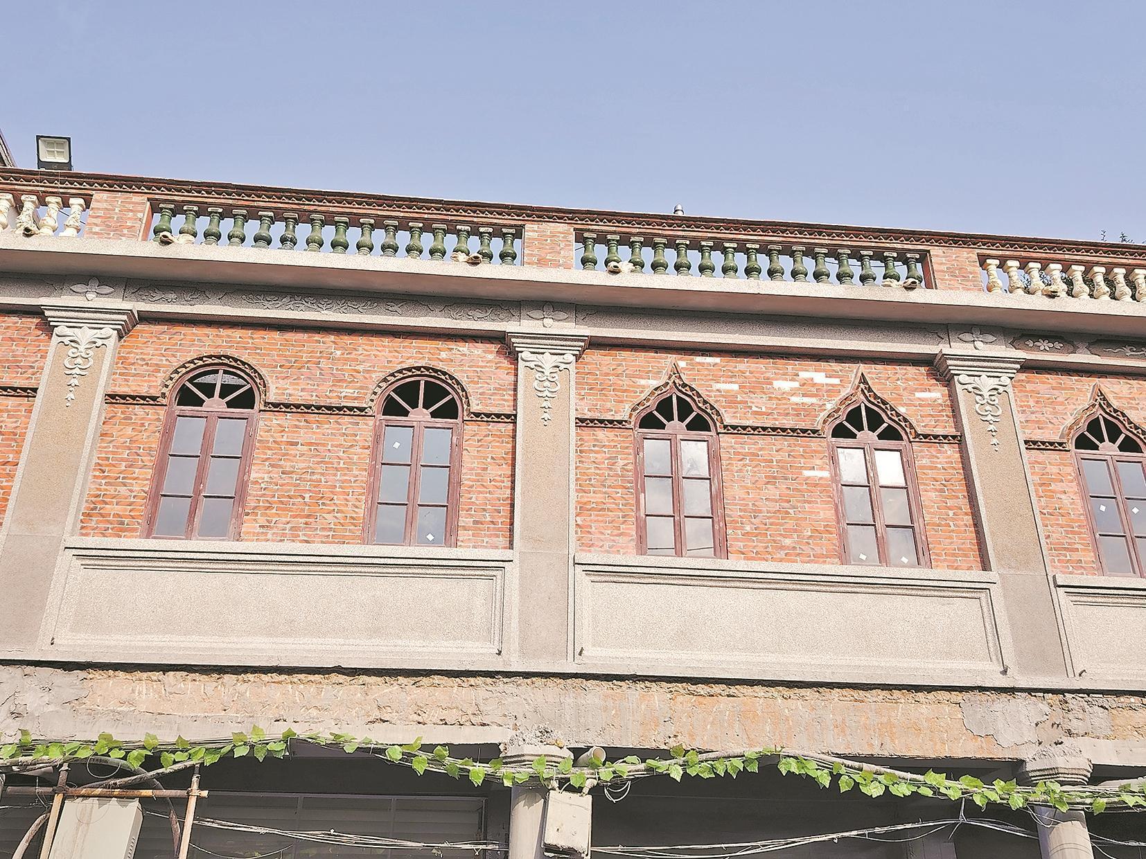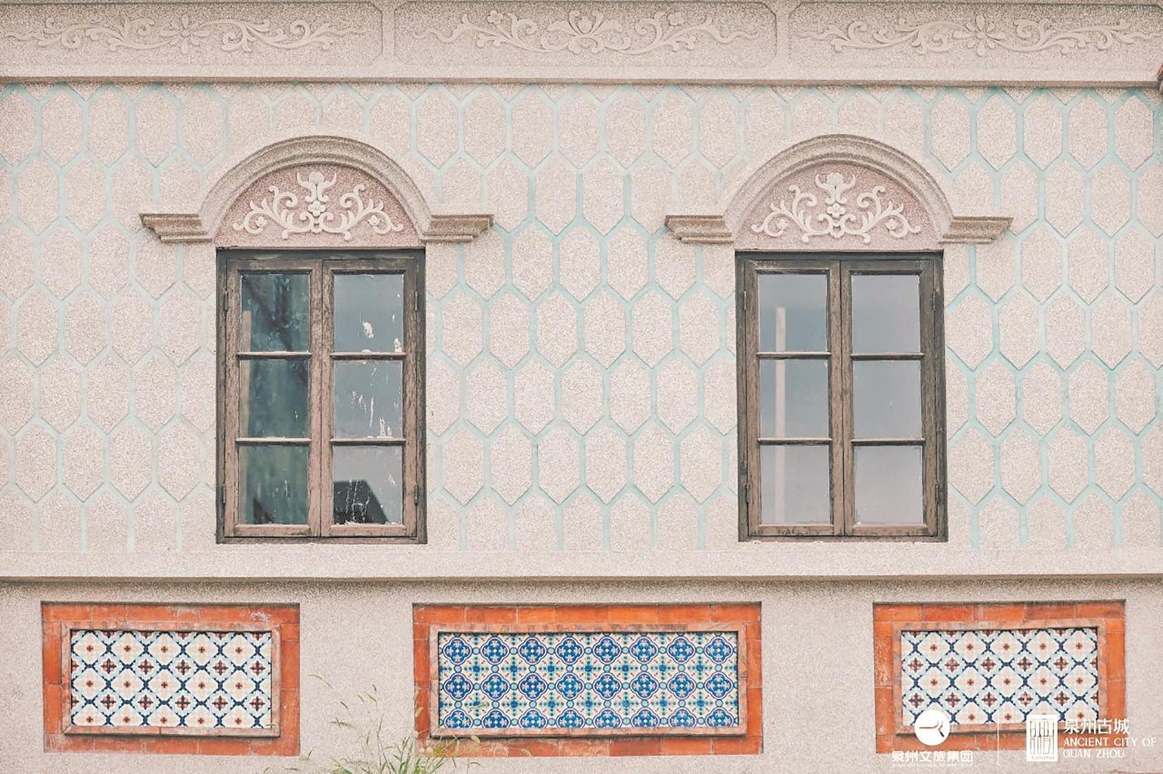 騎樓窗樣式少有單獨式的窗,都是以兩到三個窗體組成的分離式,再由精美柱體隔開。兩個或者三個一組的同款窗體相互交錯,在視覺上形成了中山路獨有的韻律感。 除了方形的常規(guī)窗,騎樓外墻面還有不少融合了異域風(fēng)格的異型窗拱,配上各樣的窗柱和出格的色彩,為街道增添了不少趣味。