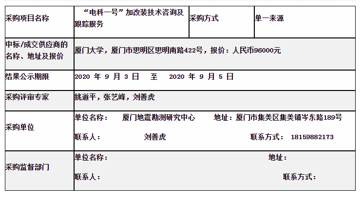 “電科一號(hào)”加改裝技術(shù)咨詢及跟蹤服務(wù)采購(gòu)結(jié)果公告