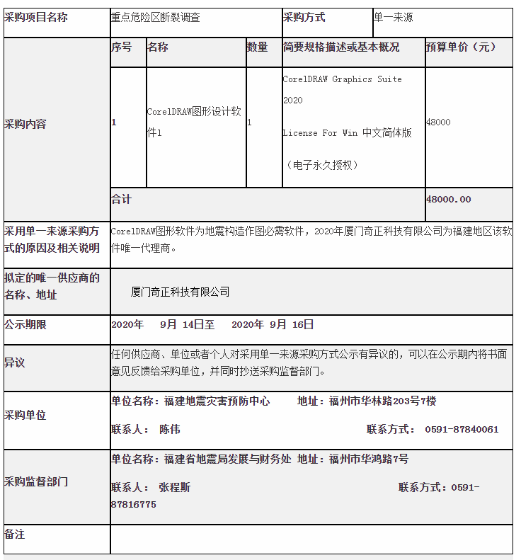我局對(duì)2020年CorelDRAW圖形軟件擬采用單一來(lái)源采購(gòu)方式進(jìn)行采購(gòu),現(xiàn)公示如下: