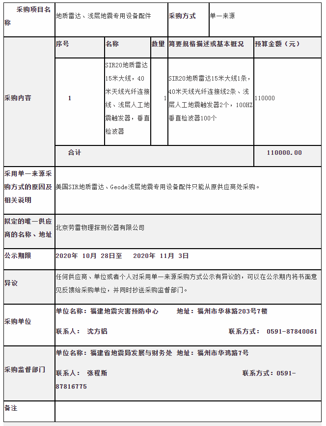 地震災(zāi)害預(yù)防中心“地質(zhì)雷達(dá)、淺層地震專用設(shè)備配件”單一來源采購公示