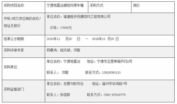 寧德地震臺膜結(jié)構(gòu)停車棚采構(gòu)結(jié)果公示