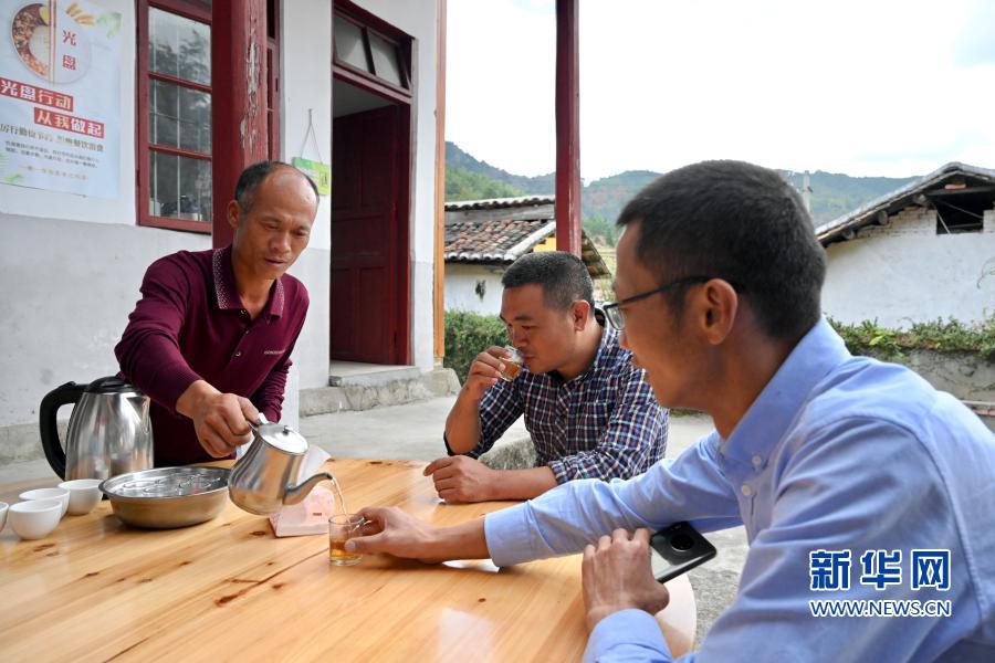 11月19日,承包村里紅軍食堂而脫貧的嶺下村村民鄧平青(左)為客人倒茶水。 近年來(lái),位于福建省三明市泰寧縣新橋鄉(xiāng)東部山區(qū)的革命老區(qū)基點(diǎn)村嶺下村立足當(dāng)?shù)丶t色文化資源和生態(tài)優(yōu)勢(shì),成功打造了“游擊隊(duì)員黃炳茂之家”、初心公園、紅色文化展廳、家風(fēng)家訓(xùn)堂、紅軍戰(zhàn)壕、嶺下蘇維埃政府舊址等旅游景點(diǎn),并大力實(shí)施農(nóng)村人居環(huán)境整治,鄉(xiāng)村面貌煥然一新,走出了一條以紅色旅游帶動(dòng)生態(tài)鄉(xiāng)村游、進(jìn)而促進(jìn)農(nóng)民增收的鄉(xiāng)村振興之路。新華社記者姜克紅 攝 |